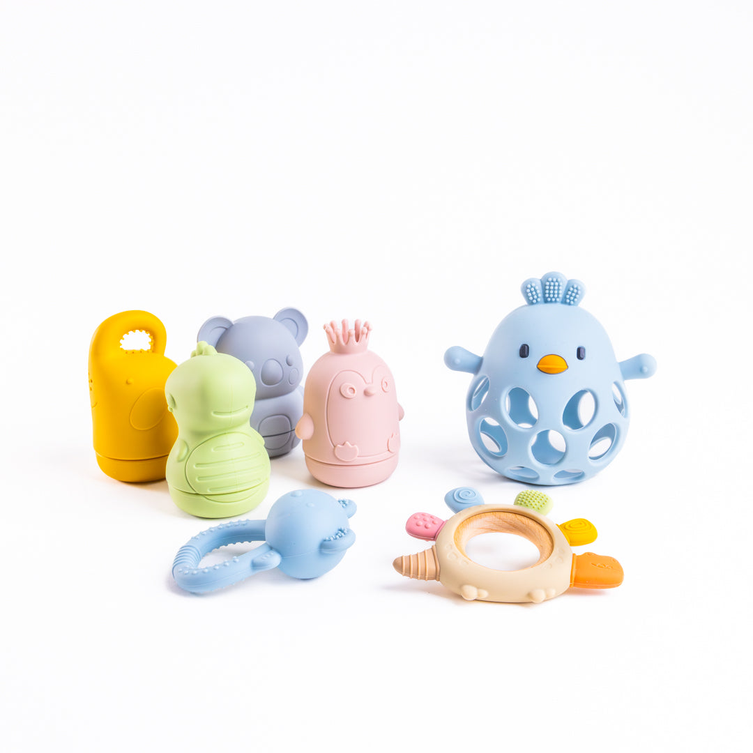 Produkterne er designet til babyer og småbørn og støtter udvikling i de tidlige stadier – herunder finmotorik, sanser og mundmotorik. Anbefalet alder fremgår altid på den enkelte produktside.